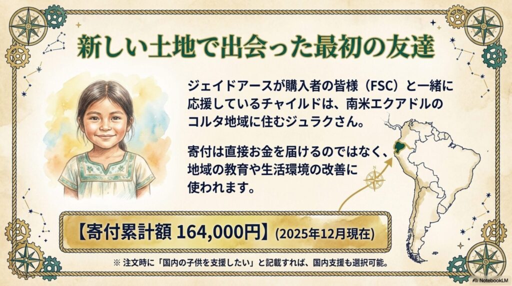 ジェイドアースが購入者様(FSC)と一緒に応援しているチャイルドは、南米エクアドルのコルタ地域に住むジュラクさん。